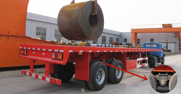 Bogie suspension: The 53 ft flatbed trailer for sale near me bogie suspension is to reduce the common leaf spring front and rear bheavy duty truck & trailer partslowboy trailer partsrackets to a single bracket connected to the car body. Compared with to truck serviceflat bed truck and trailerordinary leaf spring suspension, the bearing capacity of bogie suspension is bigger.