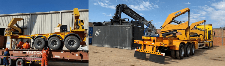 5. What are the important parts of a self loading container trailer?