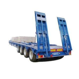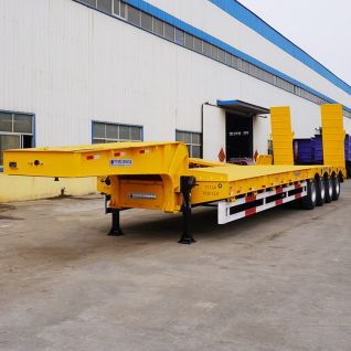 Tongya Vehicle offers 4 axle 100t low bed truck trailer designed to carry 30 tons, 40 tons, 60 tons, 80 toflatbed heavy duty trailertruck trailer dealers near mens, 100 tons, 120 tons, 150tons. It's main cargo platform is low, which ensures the stability of transpcommercial truck and trailerflatbed trailer dealers near meortation.